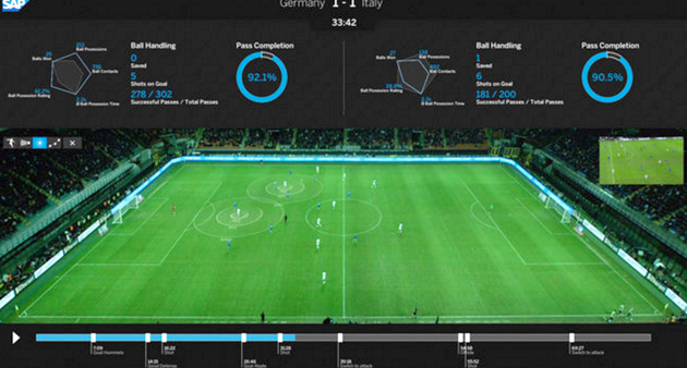 지난 2014년 브라질 월드컵의 우승국 독일. 당시 독일팀은 전략을 짤 때 기업용 소프트웨어 업체 SAP가 개발한 분석 프로그램 ‘매치인사이트’를 활용했다. 선수 몸에 부착한 센서로 데이터를 수집한 뒤 실시간으로 선수들의 기록 및 영상과 결합하고, 분석하는 프로그램이다.