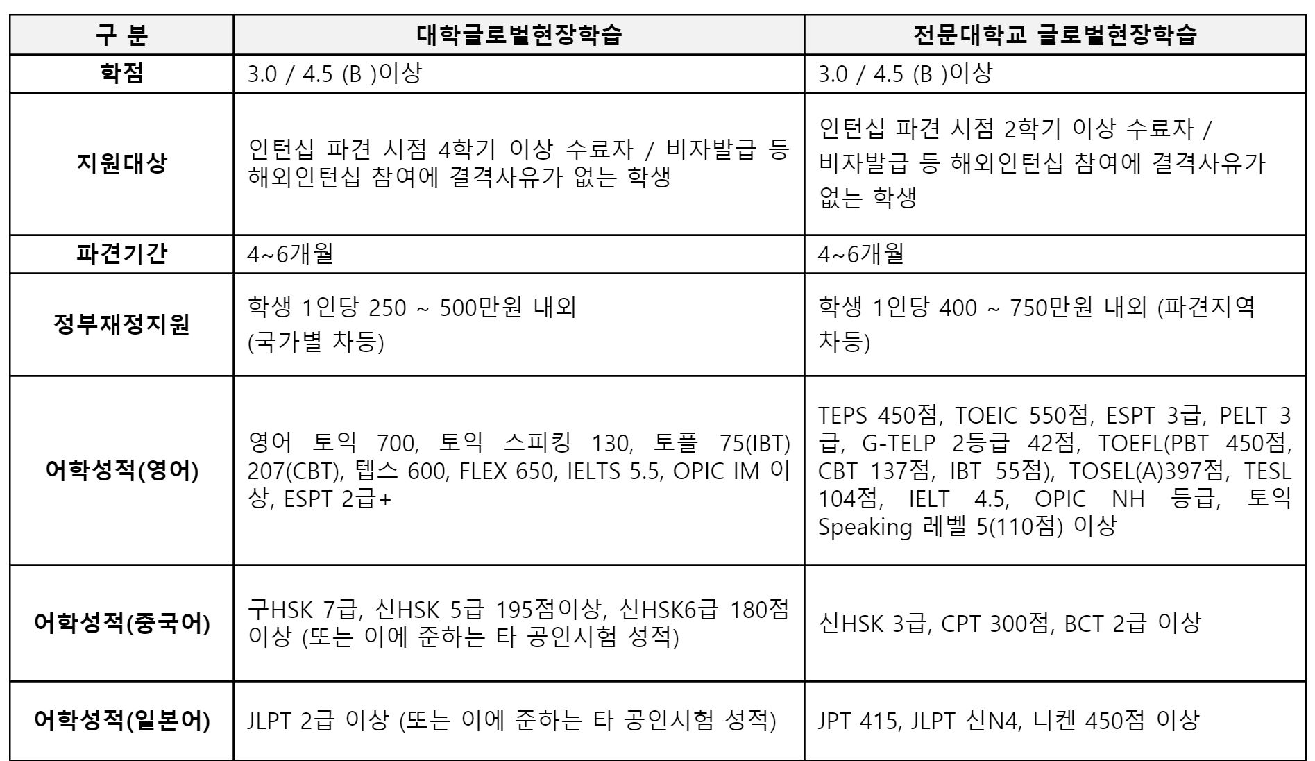 인턴십프로그램은 크게 ▲대학 글로벌 현장학습 ▲전문대학교 글로벌 현장학습으로 구분된다