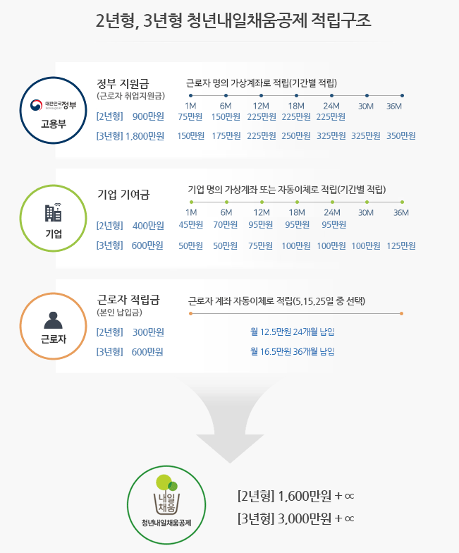 정부는 중소·중견 기업에 정규직으로 취업한 청년(만15~34세)의 금융지원과 장기근속률을 높이기 위한 '청년내일채움공제'를 시행하고 있다.