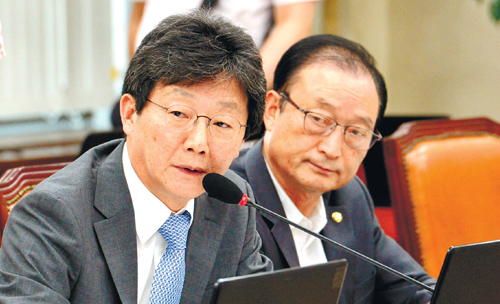 새누리당 유승민 전 원내대표(왼쪽)가 12일 북한의 지뢰도발 사건과 관련한 국방부의 긴급 현안보고를 위해 열린 국회 국방위 전체회의에서 한민구 국방장관을 상대로 우리 군의 미흡한 대응을 거세게 질타하고 있다.