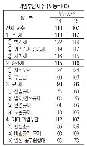 지난달말 대한상의가 내놓은 ‘2015년 기업부담지수(BBI)' 조사에서도 준조세의 폐해는 나타난다. 조세, 준조세, 규제, 기타 기업부담 등 4개 항목을 총괄한 전체 BBI지수가 100을 보통으로 했을 때 107인데 준조세는 116으로 나왔다. 조세가 117로 거의 비슷했고 규제는 86, 기타 기업부담은 107이었다. 특히 규제가 전년도 93에서 급락하는 등 3개 지표는 1년만에 개선됐는데도 준조세지수만 전년도 115에서 상승했다.