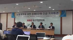 전국경제인연합회, 대한상공회의소, 한국무역협회, 한국경영자총협회, 중소기업중앙회 등 경제 5단체 부회장단은 31일 오전 10시 서울 여의도 중소기업중앙회 대회의실에서 노동 개혁에 대한 긴급 기자회견을 열고 정부가 추진하고 있는 노동개혁에 대해 "공정하고 유연한 노동시장을 만들기 위해 더 이상 늦출 수 없는 시대적 소명"이라고 밝혔다.