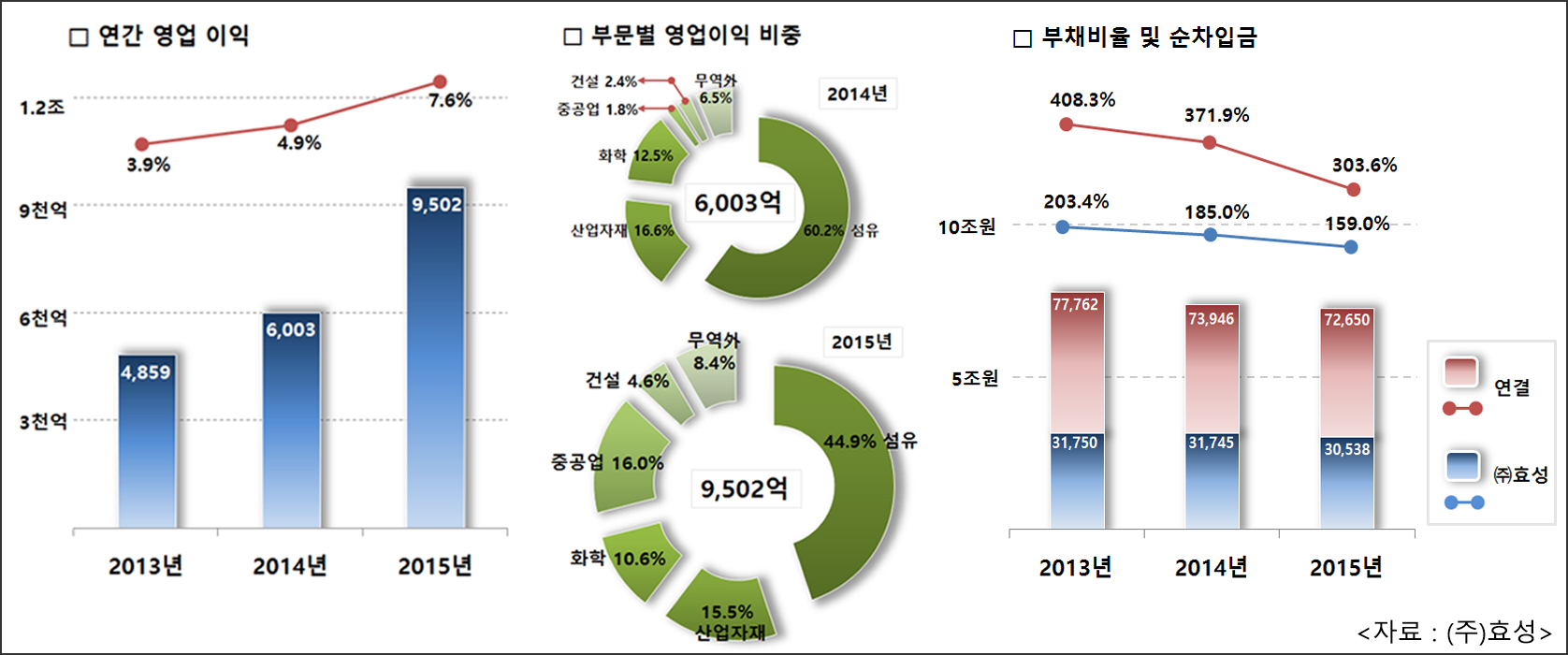 이는 지난해 그룹 전체 실적에도 고스란히 반영됐다. 효성은 지난해 매출액 12조4585억원, 영업이익 9502억원에 달하는 사상 최대실적을 기록했다. 위기 때마다 그룹내 선장의 정확한 판단과 신속한 집행이 이뤄낸 결과물이다.