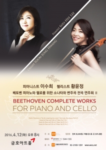 피아니스트 이수희와 첼리스트 황윤정의 듀오 리사이틀 ‘베토벤 피아노와 첼로를 위한 소나타와 변주곡 전곡 연주회 II’가 오는 4월 12일 금호아트홀에서 열린다.