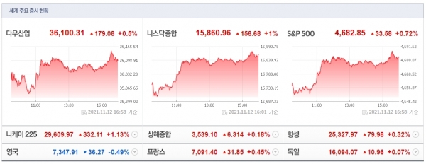 주요 기술주들은 상승폭을 키웠다. 애플, 마이크로소프트, 아마존의 주가도 1% 이상 올랐고, 페이스북의 모회사인 메타는 4% 가량 상승했다.