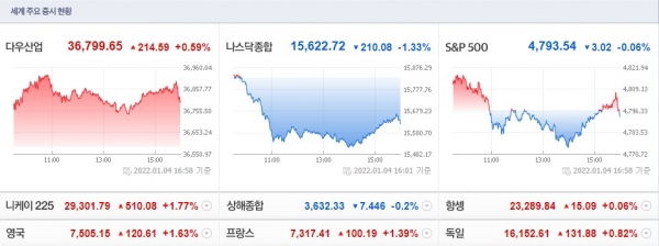투자자들은 오미크론 변이 확산세와 국채금리 상승세 등을 주시했다.