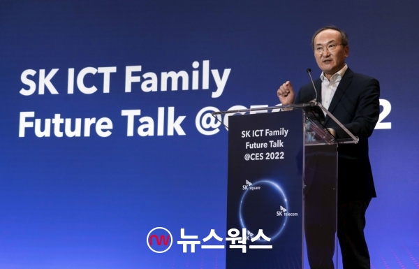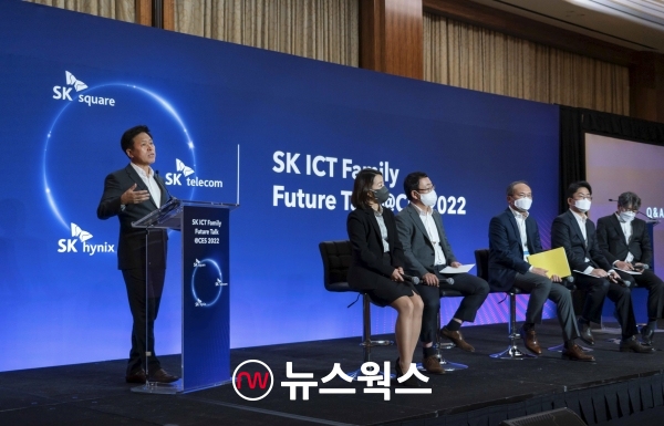 9일 SK스퀘어, SK텔레콤, SK하이닉스는 미국 라스베이거스에서 열린 세계 최대 가전∙IT 전시회 CES 2022에서 ICT 융합기술을 공동 개발 및 투자하고 글로벌 진출까지 도모하는 'SK ICT 연합'을 출범한다고 밝혔다.