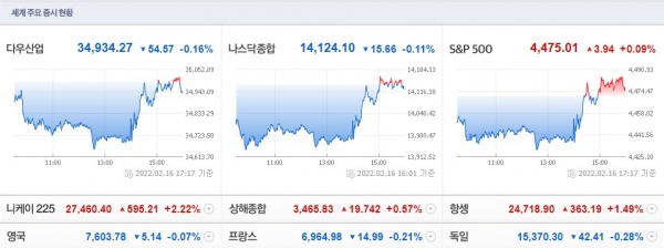 스탠더드앤드푸어스(S&P)500 지수는 전장보다 3.94포인트(0.09%) 상승한 4475.01로, 기술주 중심의 나스닥 지수는 전장보다 15.66포인트(0.11%) 내린 1만4124.10으로 거래를 끝냈다.