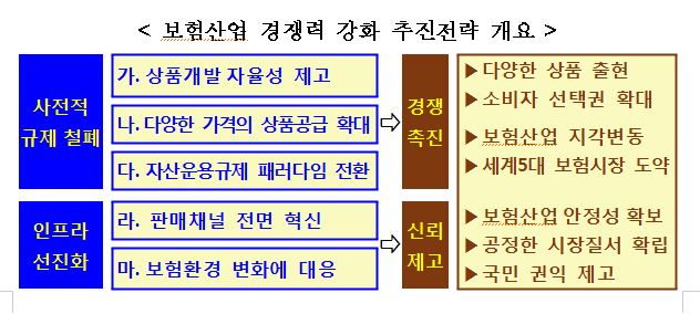 국내 보험산업이 경쟁촉진과 신뢰회복을 통해 새로운 성장동력을 창출하고 글로벌 경쟁력을 갖추는 발판이 마련됐다는 설명이다.
