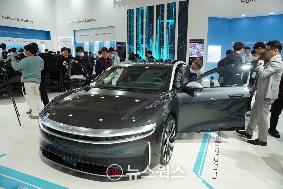 루시드 에어는 이번 전시회에서 국내 첫 공개됐으며, LG에너지솔루션의 원통형 배터리가 탑재됐다. 112kWh의 배터리가 장착돼 한 번의 충전으로 830㎞까지 주행 가능하다. 관람객들은 차량 시승을 위해 대기 줄까지 서는 등 마치 모터쇼를 방불케 했다.