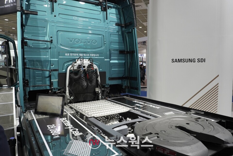 삼성SDI 전시장은 멀리서도 한눈에 알아볼 수 있었다. 전시회 입구 앞에 BMW '뉴 i7', 볼보트럭의 'FM 일렉트릭'이 자리 잡고 있었기 때문이다.