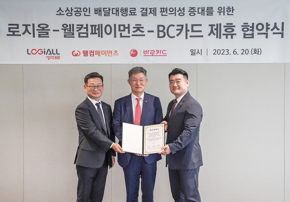 BC카드는 배달대행 플랫폼운영사인 '로지올(생각대로)', 전자지급결제대행(PG)사인 '웰컴페이먼츠’와 손잡고 배달대행료 결제서비스 업무협약을 체결했다고 21일 밝혔다.