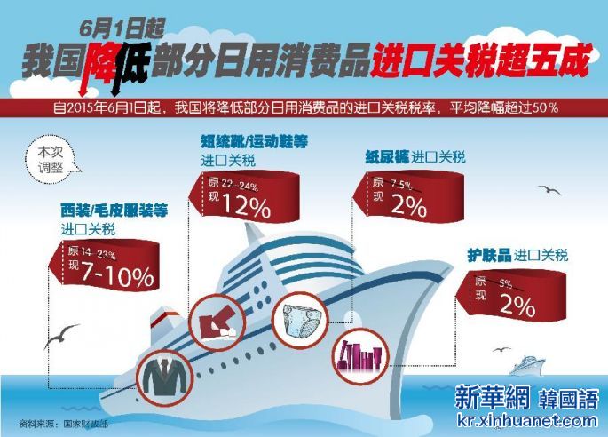 [베이징 신화사=뉴스웍스] 오는 6월 1일부터 중국에서 일용소비품 수입품 관세가 평균 50%가량 낮아질 것으로 전망된다.