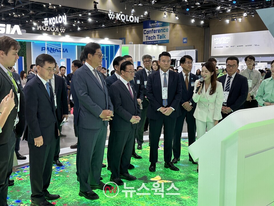 개막식 이후 주요 인사들은 H2 MEET 2024 전시장을 돌아보며 주요 기업들의 수소 기술 현황을 살폈다.