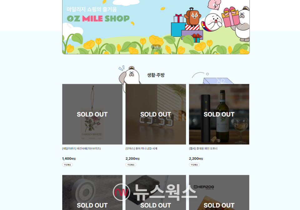 아시아나항공 관계자는 "올해 소멸되는 마일리지를 보유한 회원들께 안내 문자를 발송 중이며 이에 따라 OZ마일샵 접속 및 구매량이 평소 대비 증가해 품절 현상이 지속 발생하고 있는 것으로 파악되고 있다"며 "해당 기간 판매 수량 증가 및 품목 수 확대 등을 통해 회원들이 좀 더 편리하게 OZ마일샵을 이용하실 수 있는 운영 방안을 지속적으로 검토 중이다. 회원들의 마일리지 이용에 불편함이 없도록 최대한 빠르게 개선할 계획"이라고 말했다.