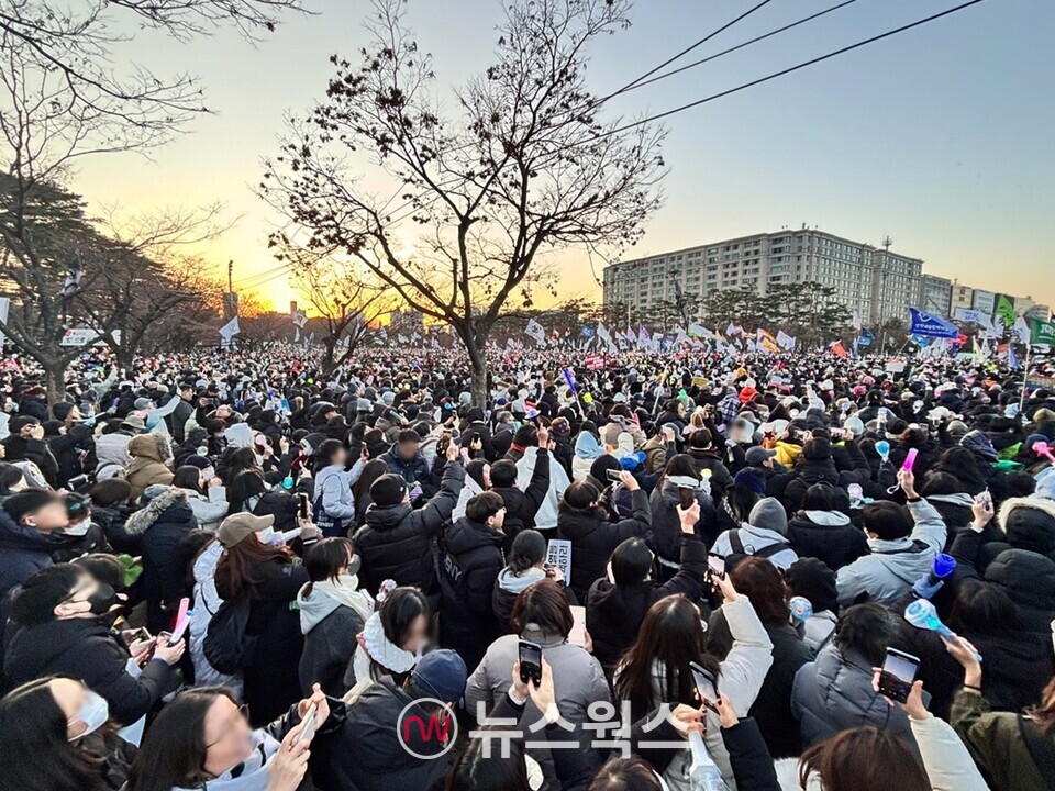[뉴스웍스=허운연 기자] 윤석열 대통령 탄핵소추안이 14일 국회에서 가결되자 시민들의 환호성이 곳곳에서 터져나왔다.