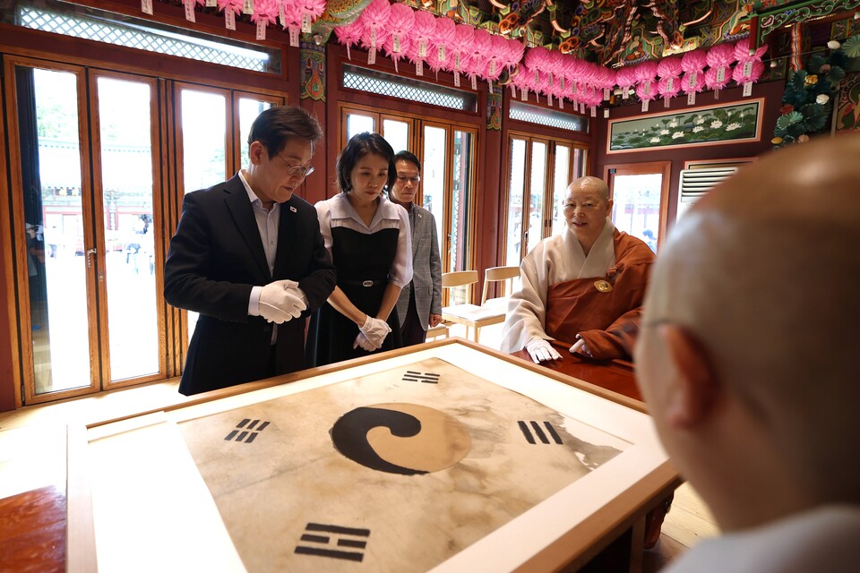 [뉴스웍스=이한익 기자] 이재명 대통령 내외는 17일 오후 서울 은평구에 위치한 진관사를 방문했다고 강유정 대통령실 대변인이 서면 브리핑을 통해 전했다.