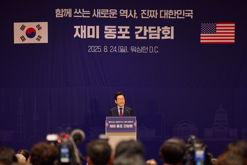[뉴스웍스/워싱턴(미국)=이한익 기자] 한미 정상회담을 위해 미국을 순방 중인 이재명 대통령이 24일(현지시간) 재미 교포들과 만나 "군사동맹으로 시작된 한미 관계는 이제 '경제동맹'을 넘어 '기술동맹'을 아우르는 '미래형 포괄적 전략동맹'으로 발전하고 있다"고 강조했다.