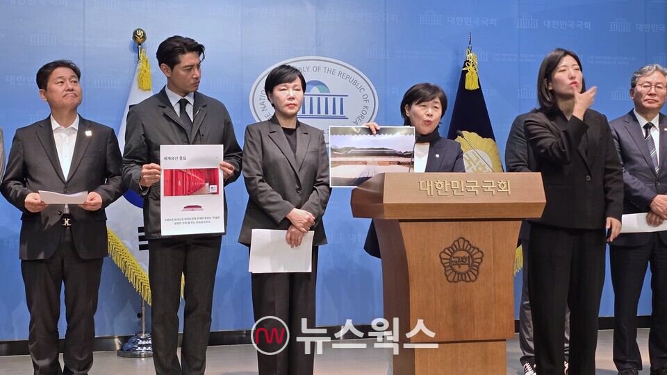 더불어민주당 문화예술특별위원회는 11일 국회 소통관에서 기자회견을 열고 "서울시가 종묘 앞 140m 초고층 빌딩을 추진하고 있다"며 "유네스코 세계유산 1호 종묘의 가치를 훼손하는 개발 계획은 즉각 철회돼야 한다"고 밝혔다.