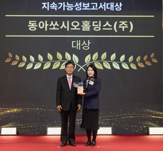 동아쏘시오홀딩스가 한글로벌스탠더드경영대상 시상식에서 지속가능보고서 대상을 수상했다.