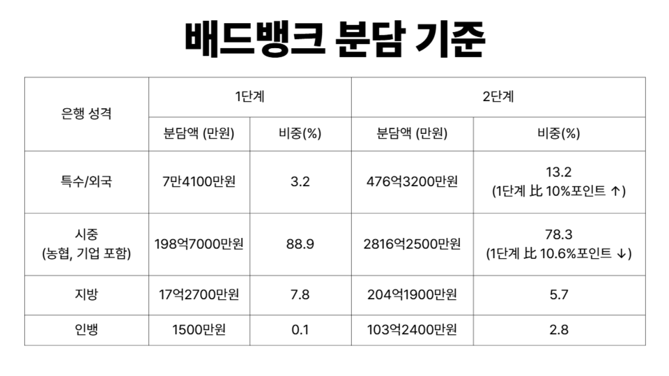1단계 '부실채권 보유량'·2단계 '충당금 반영 순익' 기준으로 분담금 배분